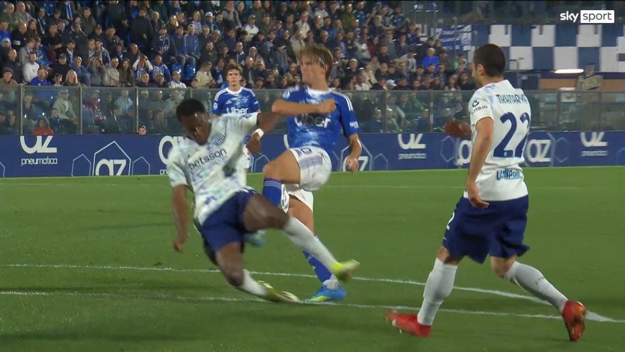 La partita successiva è Inter-Atalanta, 14 marzo, finita 1-1. Non bastassero le polemiche per il pari bergamasco, arrivato dopo un contatto tra Dumfries e Sulemana, il vero caos si scatena nel finale quando il tocco di Scalvini su Frattesi non era stato sanzionato col rigore, con l’arbitro Manganiello neppure richiamato dal Var Gariglio. Sia per Cesari che per l’Aia, era fallo: sarebbe potuto valere il 2-1 e due punti in più.